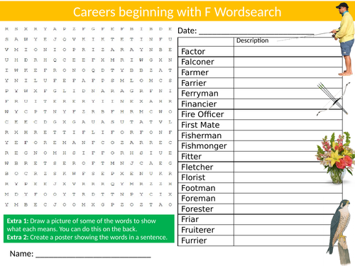 Jobs Beginning With F Wordsearch Sheet Starter Activity Keywords Cover Homework Careers Teaching Resources